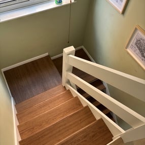 D’un escalier ancien recouvert de moquette à un rendu moderne et chaleureux !